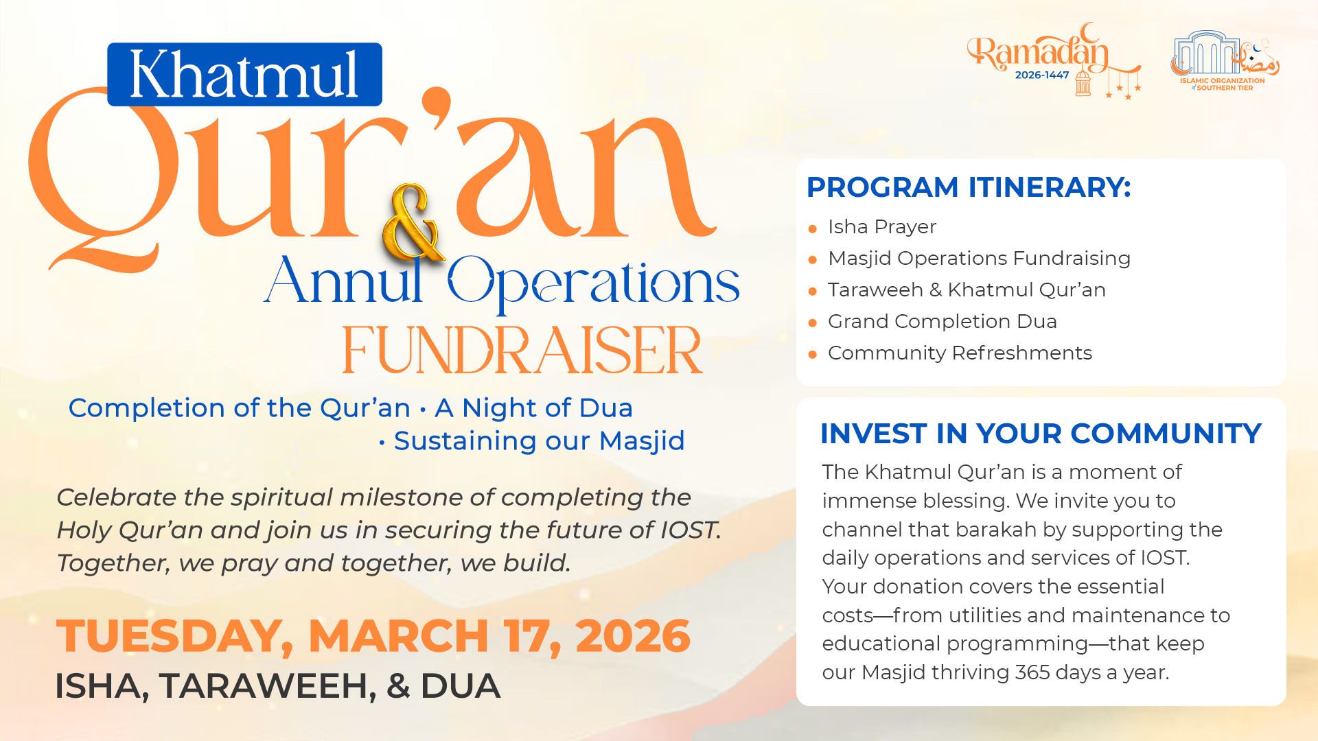 All events held at IOST are expected to observe proper Islamic etiquette and guidelines throughout, ensuring that the gathering remains pleasing to Allah (SWT) and beneficial to all who attend.