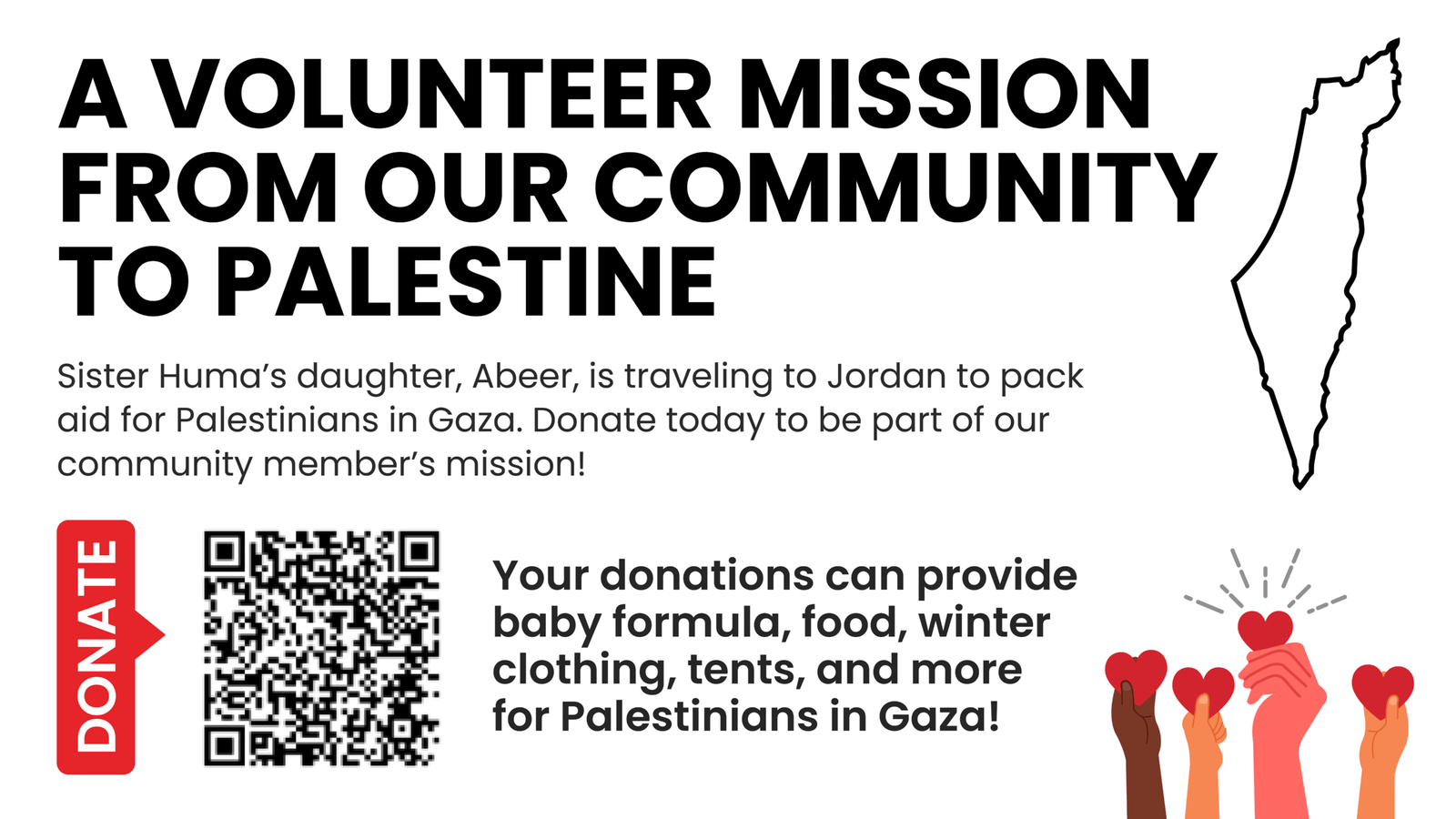 If you would like the community to make du‘a (supplication) for you or a family member, you are welcome to inform our Imam. With your permission, he will make a special du‘a and share your request during the Friday Jumu‘ah prayers so the entire congregation may join in asking Allah (SWT) for His mercy, healing, and guidance.