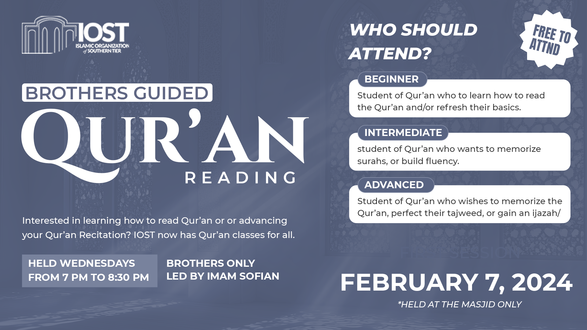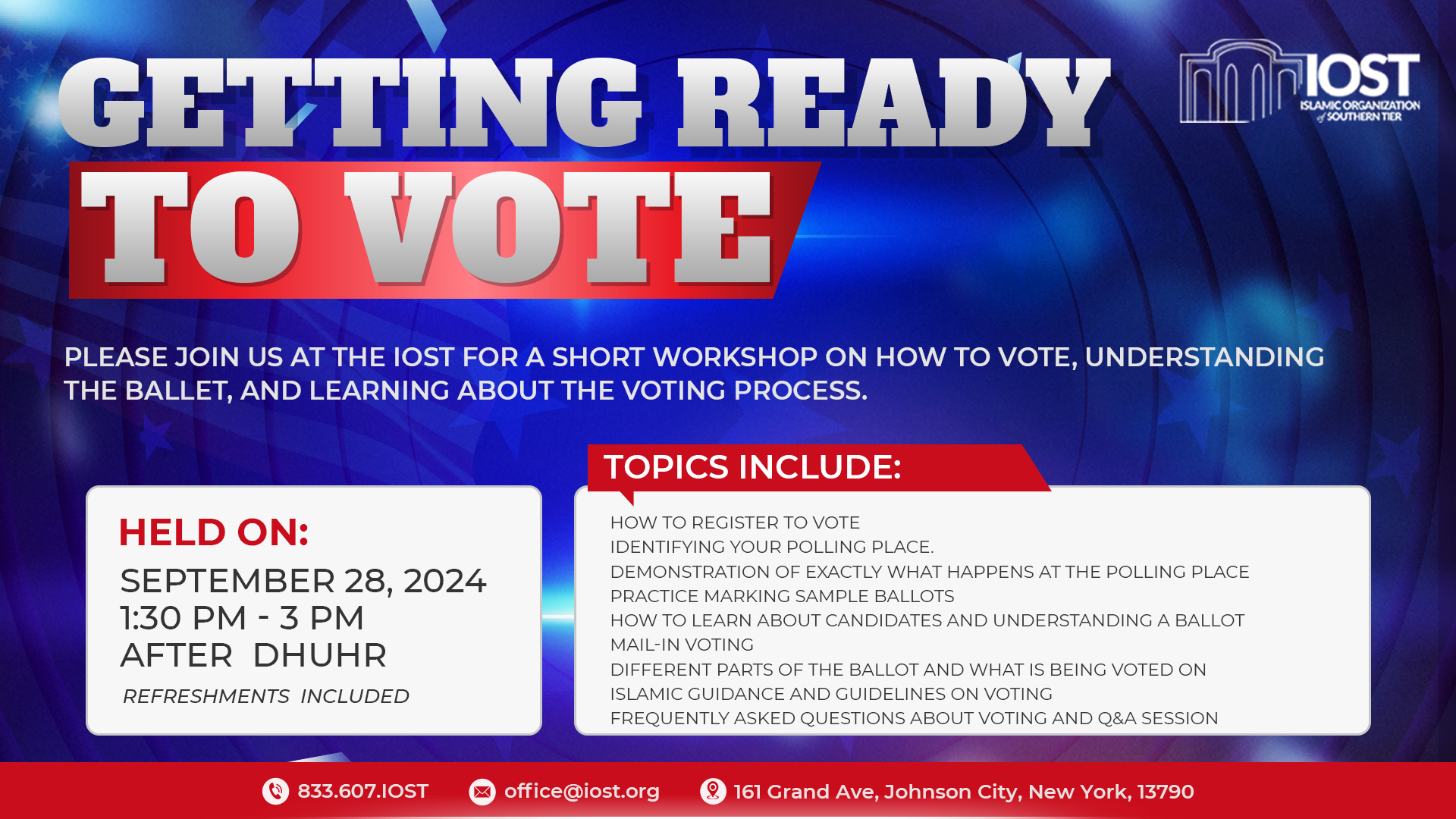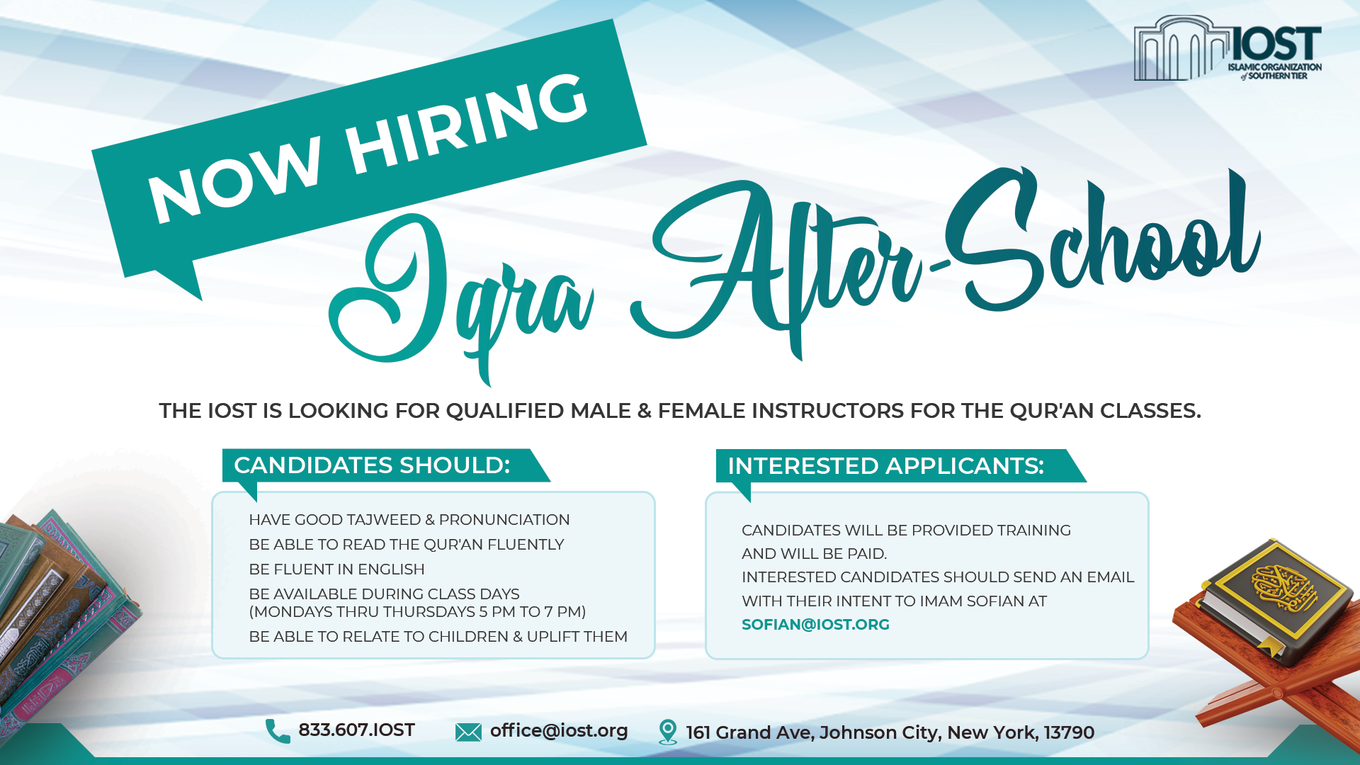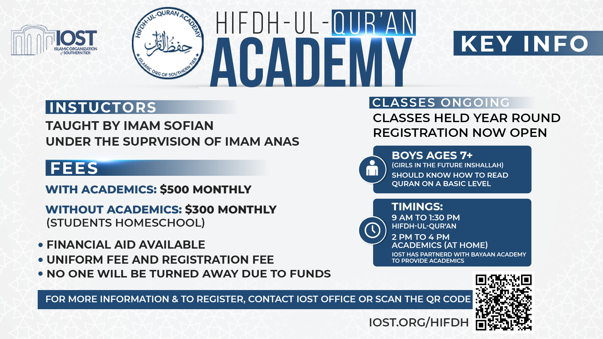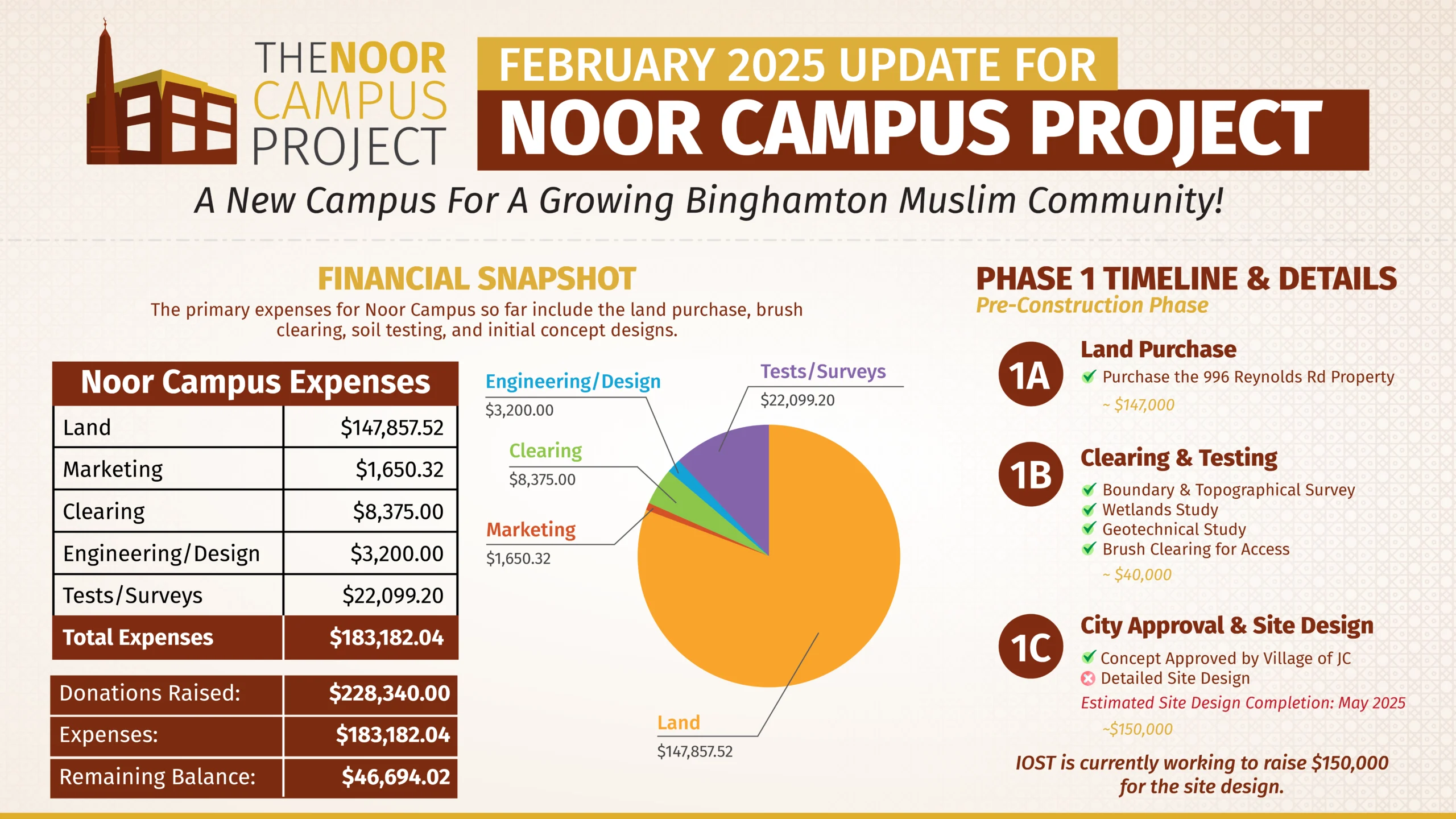 The Islamic Organization of Southern Tier (IOST) is setting forth ambitious goals for 2025, extending beyond our daily services to encompass significant community growth. We are dedicated to achieving four major objectives that will enhance our Masjid’s capabilities and serve the needs of our members more effectively.