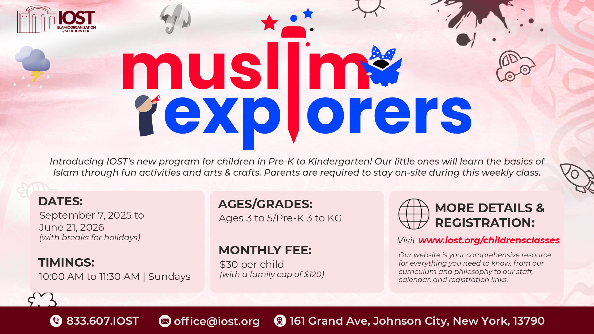 Muslim Explorers is IOST’s weekly program for our youngest learners, open to children from Pre-K 3 to Kindergarten. Classes are held on Sundays from 10:30 AM to 11:15 AM.