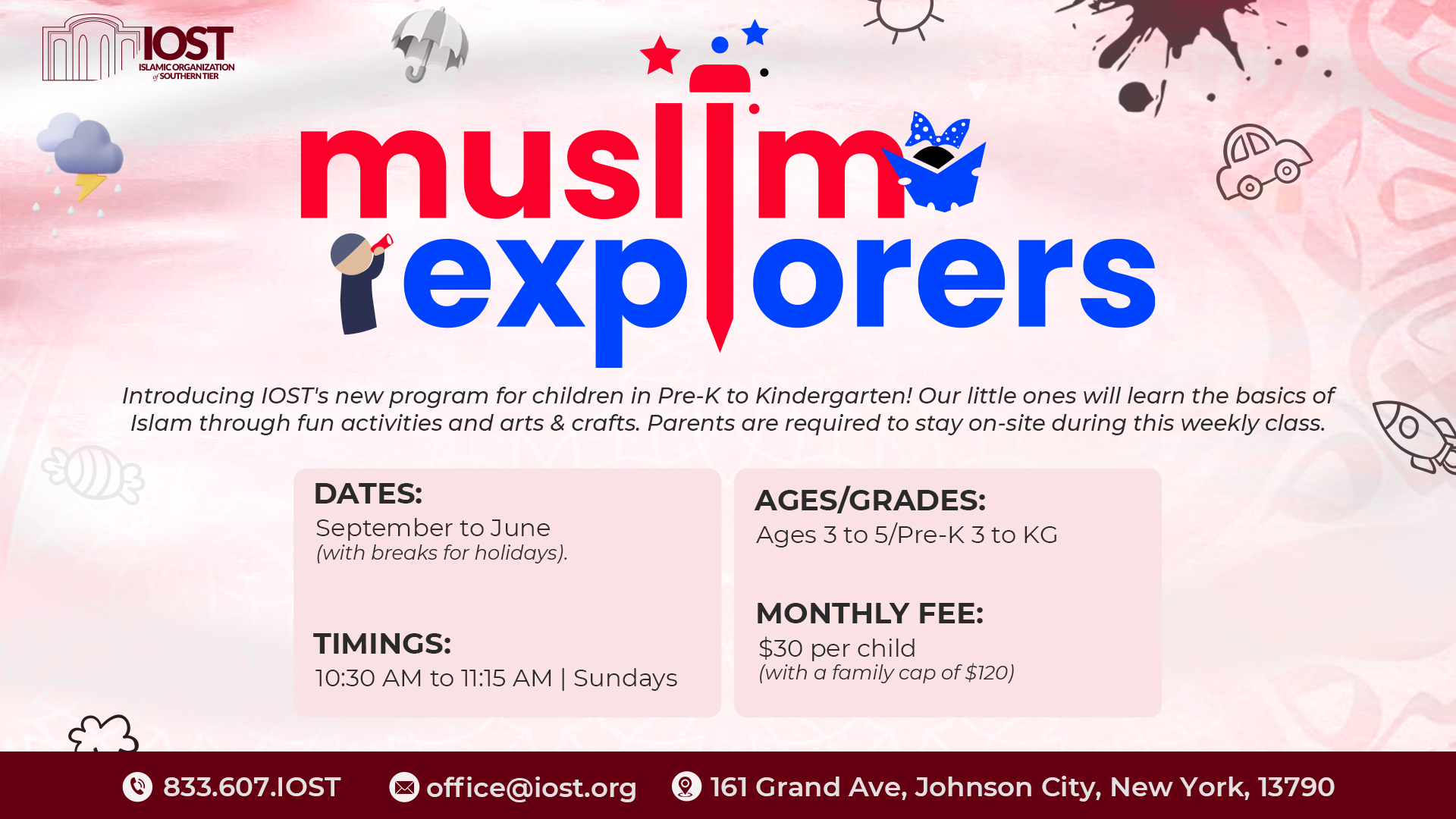 Muslim Explorers is IOST’s weekly program for our youngest learners, open to children from Pre-K 3 to Kindergarten. Classes are held on Sundays from 10:30 AM to 11:15 AM.