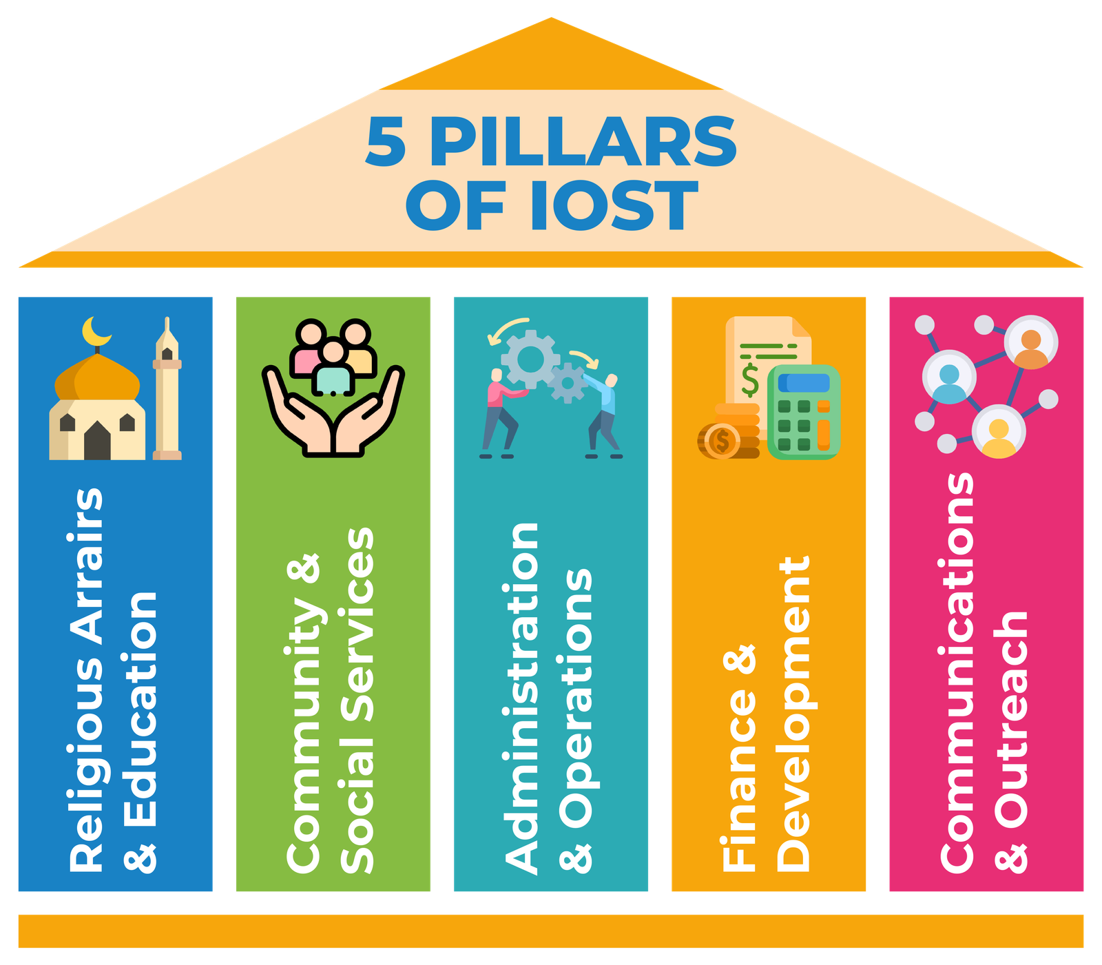 IOST thrives on the active participation of our community members. Our operations are organized around ‘The Five Pillars,’ which represent five key committees responsible for various functions within the masjid. These committees are essential to the success of IOST, and we invite you to become a part of this dedicated team. If you are interested in joining a committee and making a meaningful contribution, please express your interest by completing the form below.