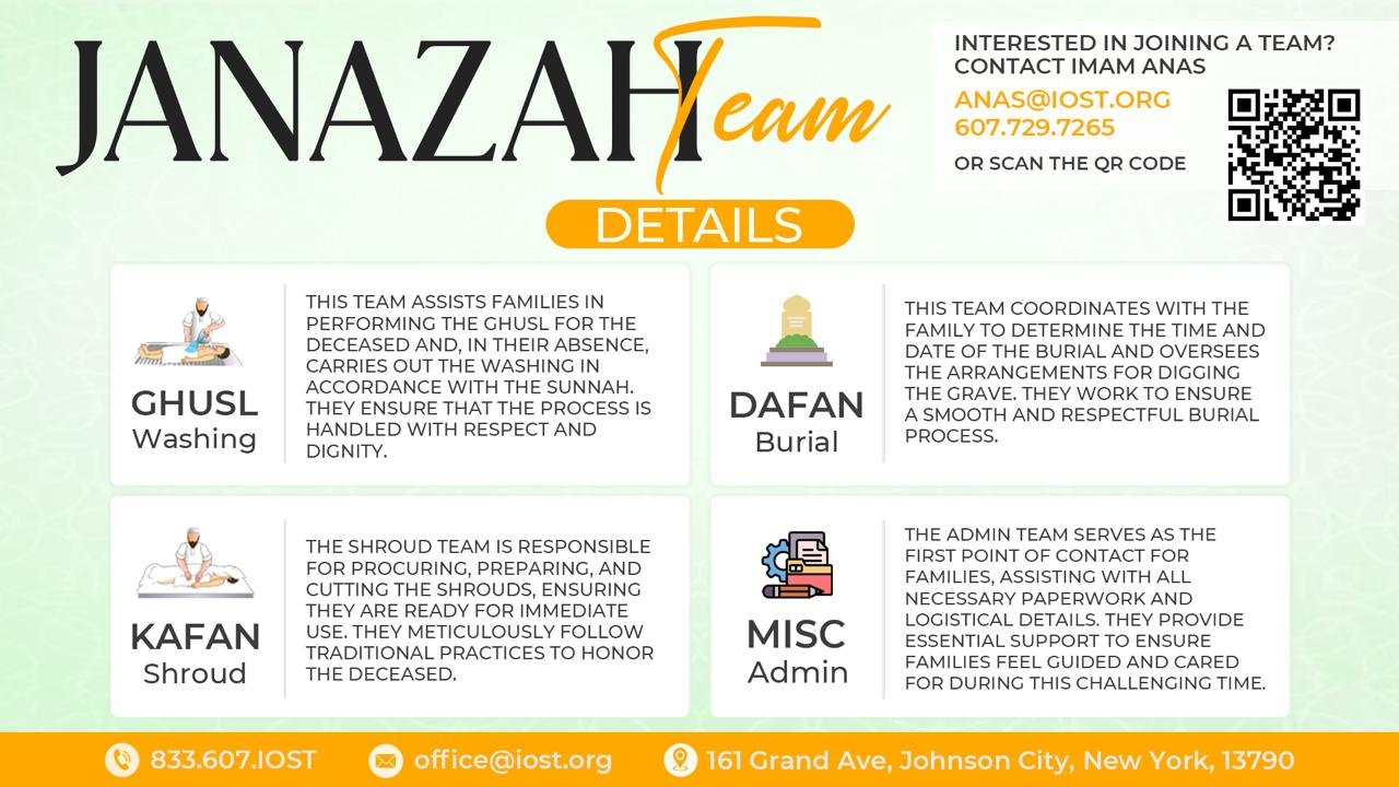 IOST is looking for community members to join the Washing (Ghusl) and Burial (Dafan) teams. The aim is to respectfully and properly assist in the Islamic funeral process.