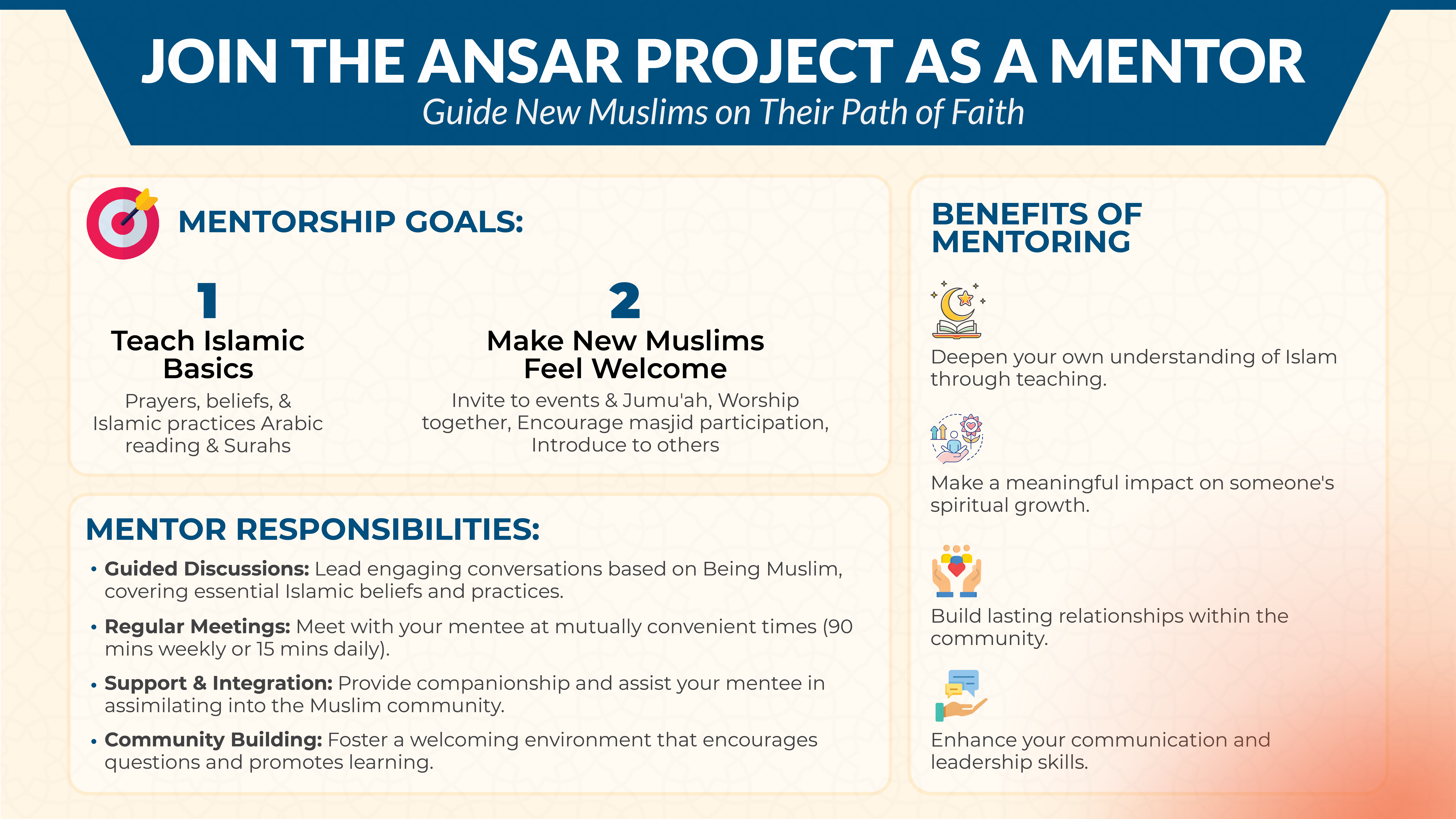 The IOST is seeking dedicated volunteers to mentor new Muslims in the basics of Islam and help